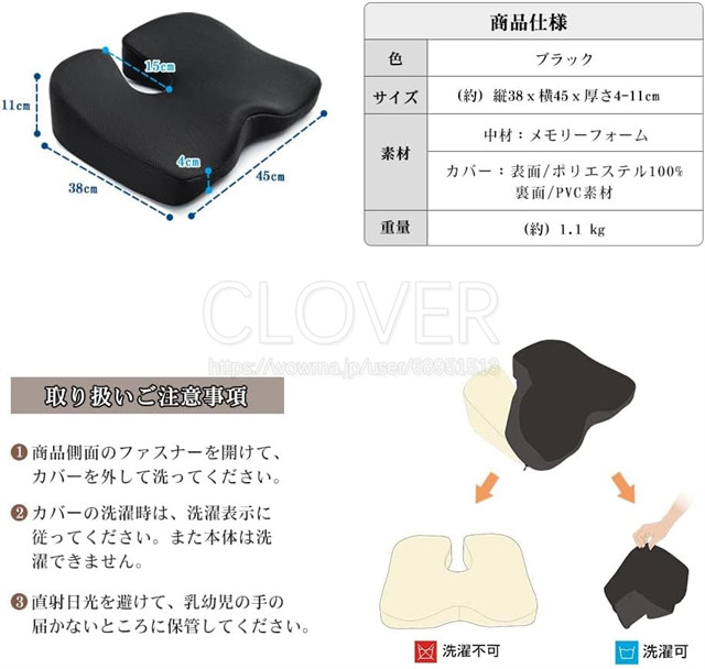 通気性メッシュ付きのカバーで、長時間座っても蒸し暑くないです。カバーは取り外して洗えるので、お手入れも簡単。