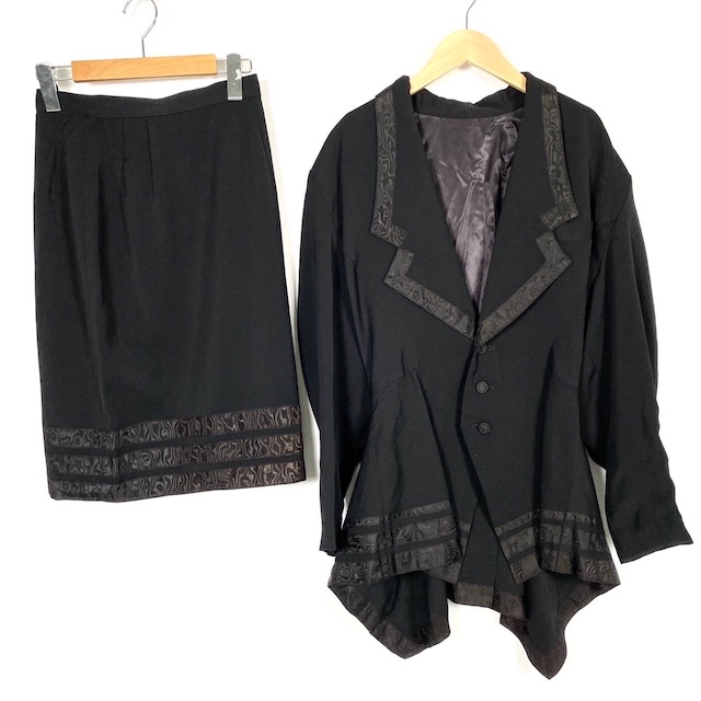 【中古】山本寛斎 Kansai JAPAN セットアップ ジャケット スカート 黒 ブラック レディース