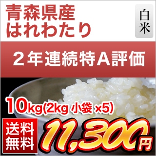 青森県産 はれわたり 白米 <2回連続特A評価> 10kg(2kg×5袋) 【送料無料】【米袋は窒素充填包装】【即日出荷】令和7年(2025年)産