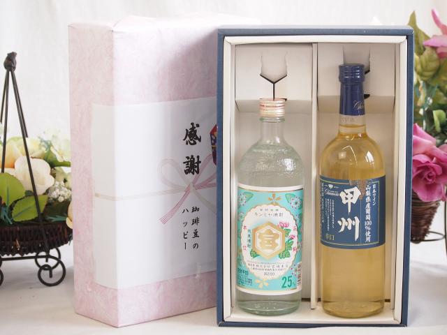 春の贈り物便り 感謝の贈り物ボックス 絶大な人気を誇るキンミヤ焼酎と国産ワイン2本セット(山梨県産葡萄100%使用 甲州 辛口白ワイン 辛口(山梨県)720mlキンミヤ焼酎25度(三重県)720ml