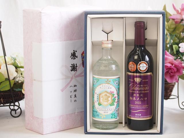 春の贈り物便り 感謝の贈り物ボックス 絶大な人気を誇るキンミヤ焼酎と国産ワイン2本セット(樽熟成松本メルロ赤ワイン フルボディ(山梨県)750mlキンミヤ焼酎25度(三重県)720ml