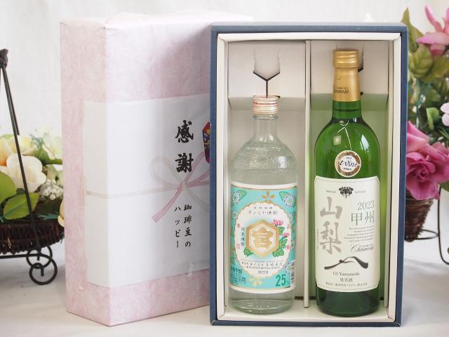 春の贈り物便り 感謝の贈り物ボックス 絶大な人気を誇るキンミヤ焼酎と国産ワイン2本セット(山梨 甲州 白ワイン やわらかな辛口(山梨県)750mlキンミヤ焼酎25度(三重県)720ml