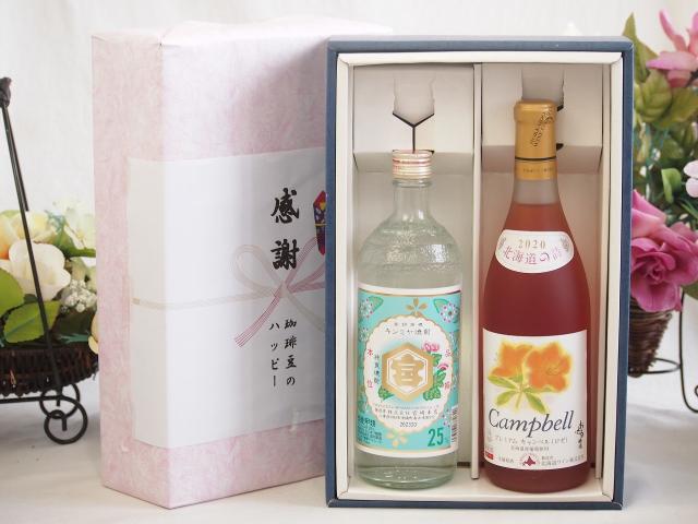 春の贈り物便り 感謝の贈り物ボックス 絶大な人気を誇るキンミヤ焼酎と国産ワイン2本セット(北海道の詩 プレミアムキャンベルロゼワイン 甘口(北海道)720mlキンミヤ焼酎25度(三重県)720ml