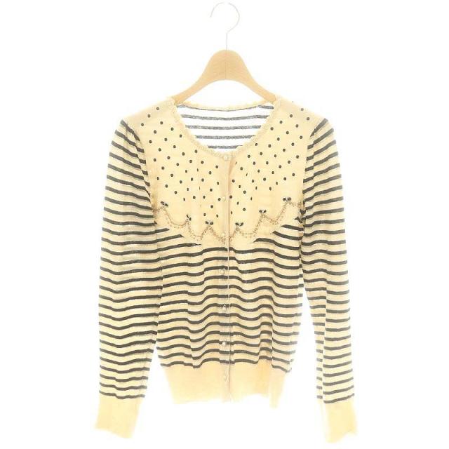 【中古】シェリーラファム ラメ刺繍ビーズニットカーディガン 長袖 ボーダー M ベージュ 黒 レディース