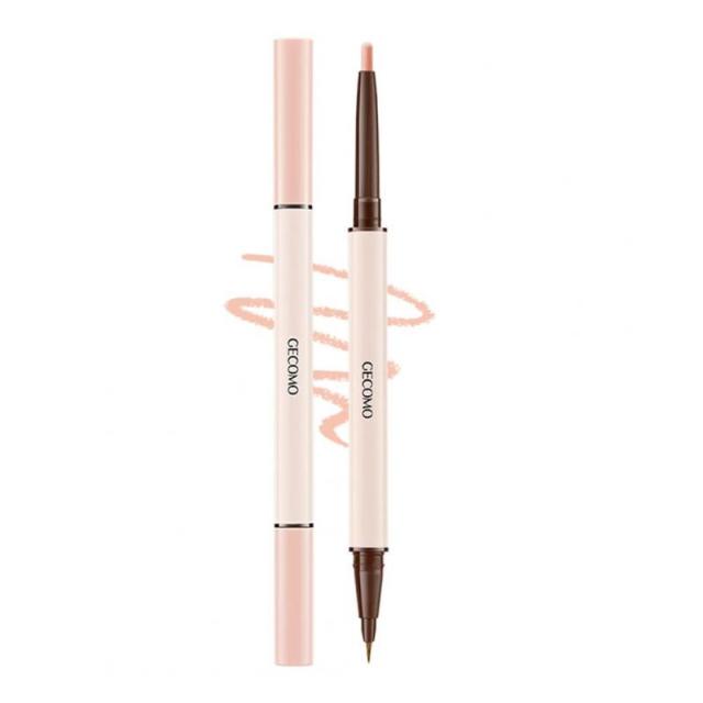 GECOMO 二重芯アイライナー 涙袋ライナー ウォータープルーフペンシルアイライナー 【ペンシル & リキッド 2in1】人気コスメ高密着 ダブルラインエキスパート 影用グレージュ ふたえを強調 リキッドアイライナー 描くふたえアイライナー (ZX-21