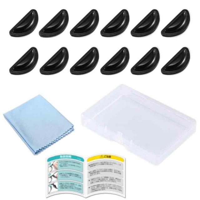 [LIFHEA] メガネ 鼻パッド 眼鏡 鼻あて シリコン ズレ防止 ノーズパッド 滑り止め 粘着式 12セット計24個 専用収納ケース・メガネクロス付き (ブラック)