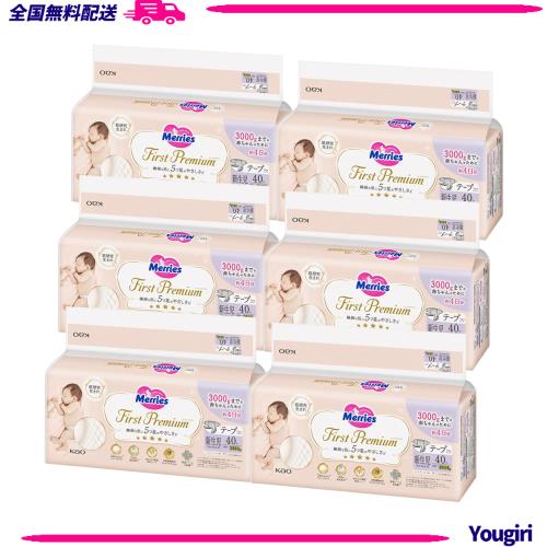 【テープ 新生児サイズ】 メリーズ ファーストプレミアム (お誕生~3000g) 240枚 (40枚×6パック) [ケース品] 2倍やわらかカシミヤタッチ