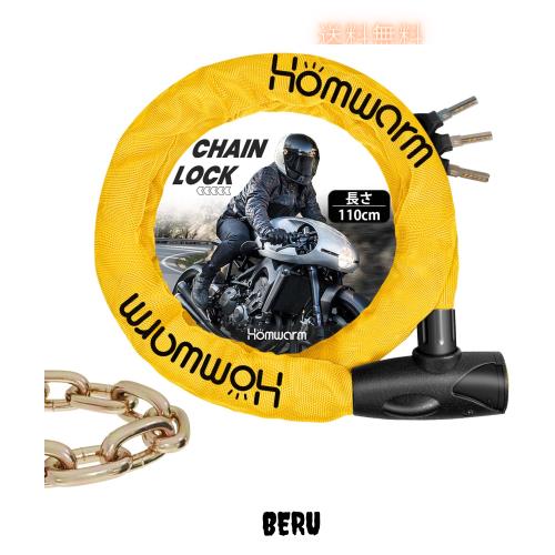 Homwarm バイクロック チェーンロック 頑丈 盗難防止 鍵3本付き 極太 長さ1100mm チェーンパイプ直径8mm 多用途 自転車 バイク ワイヤー