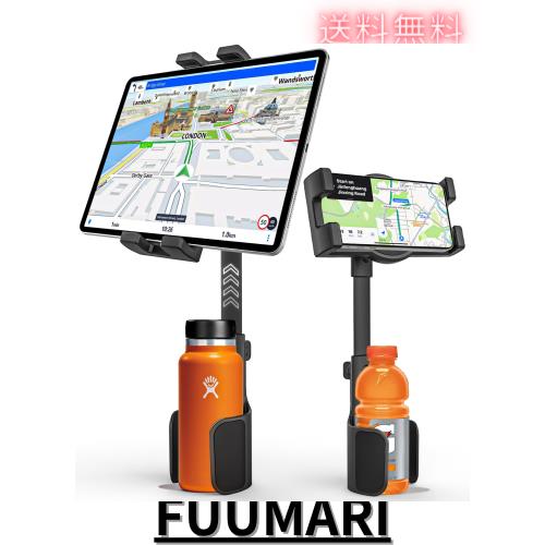 Charchendo 2in1車載ホルダー【水筒収納】タブレットカップホルダー 伸縮アーム 車 ドリンク ipad ホルダー 運転席 スマホスタンド 高さ