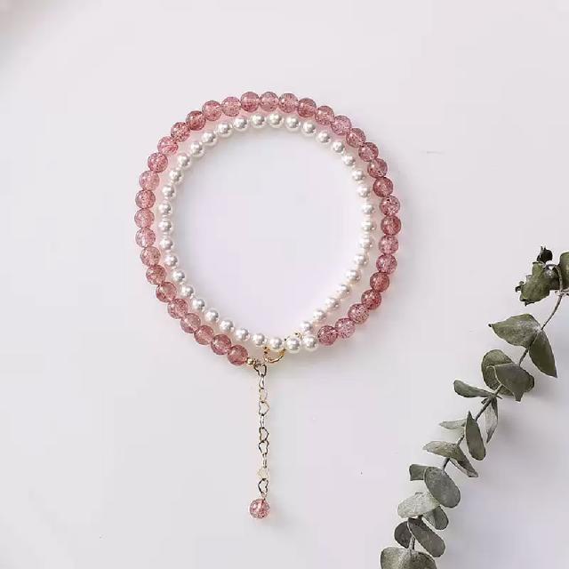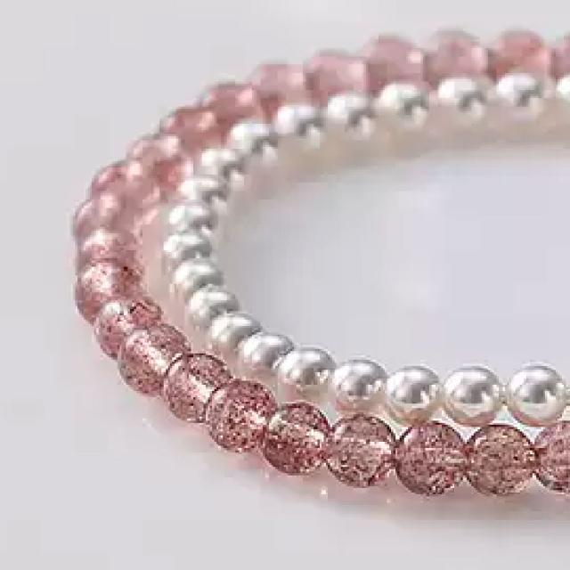 [開運 金運 仕事運 ] 天然石 ブレスレット 6mm ストロベリークォーツ 天然石ブレスレットパワース トーンブレスレッ スアクセサリー