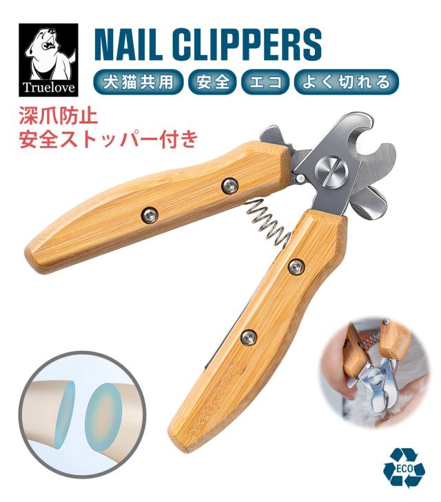 Truelove 犬用 爪切り 竹製 ステンレス鋼 ワンサイズ 深爪防止ストッパー付き 安全 切れ味抜群 握りやすい お手入れ用品 猫用 ペット用 丈夫 長持ち エコ 使いやすい ステンレス半円刃 抗菌 コンパクト 軽量 手になじむ ネイルクリッパー