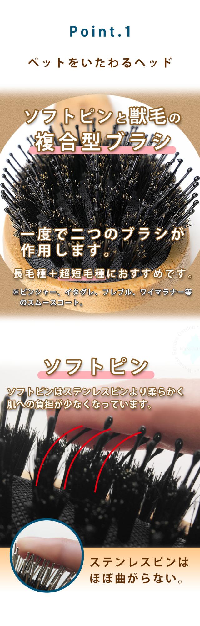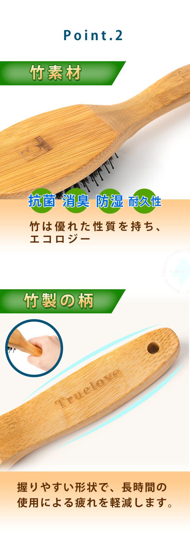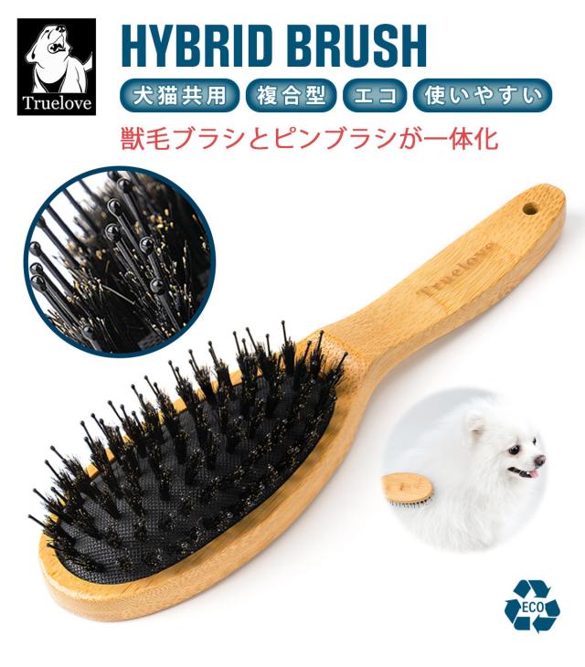 Truelove 犬用 ブラシ 竹製 豚毛 ワンサイズ ブラッシング グルーミング 超短毛種 長毛種 複合ブラシ 獣毛ブラシ ピンブラシ ソフトピン マッサージ 猫用 お手入れ用品 丈夫 長持ち エコ 複合型 抗菌 耐熱 持ちやすい 使いやすい ハイブリッドブラシ