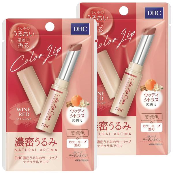 DHC 濃密うるみカラーリップ ナチュラルアロマ ワインレッド ウッディシトラスの香り 1.5g×2個セット メール便送料無料