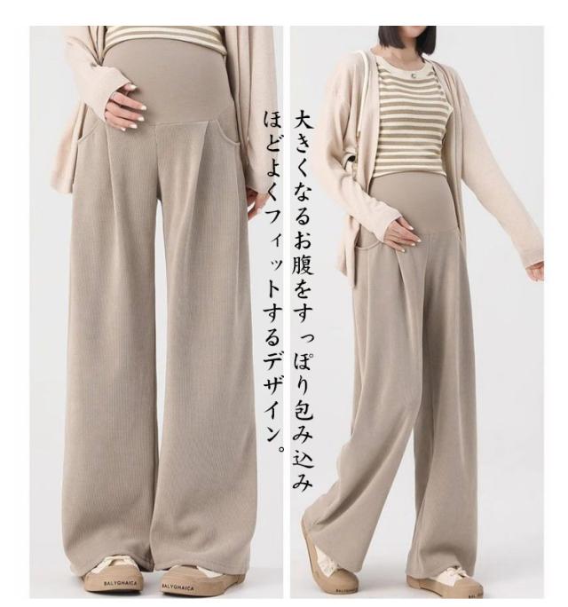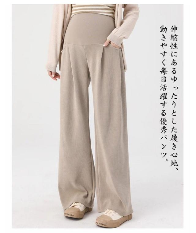防寒 あったか マタニティ パンツ 無地 大きいサイズ ワイドパンツ 冷え対策 秋冬 美脚 リブワイドパンツ ズボン 妊婦 寒さ対策 保温 ボトムス ワイドパンツ 美脚 マタニティズボン マタニティ マタニティパンツ 産前 暖かい 極暖 脚長効果