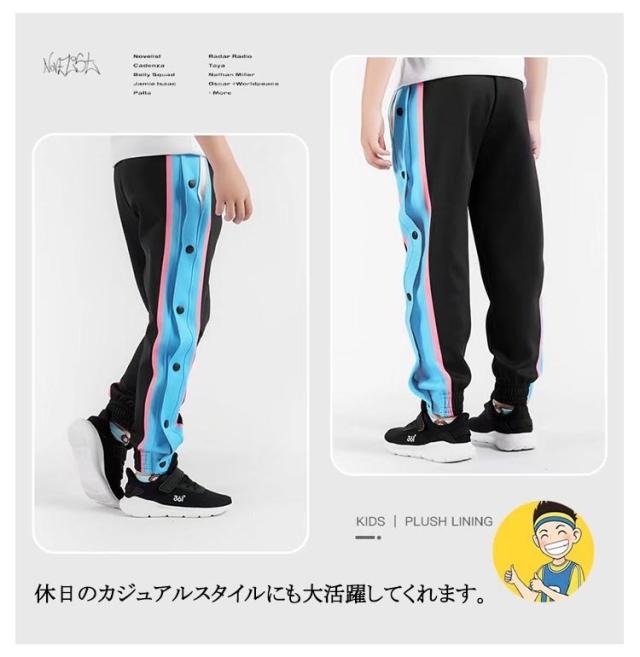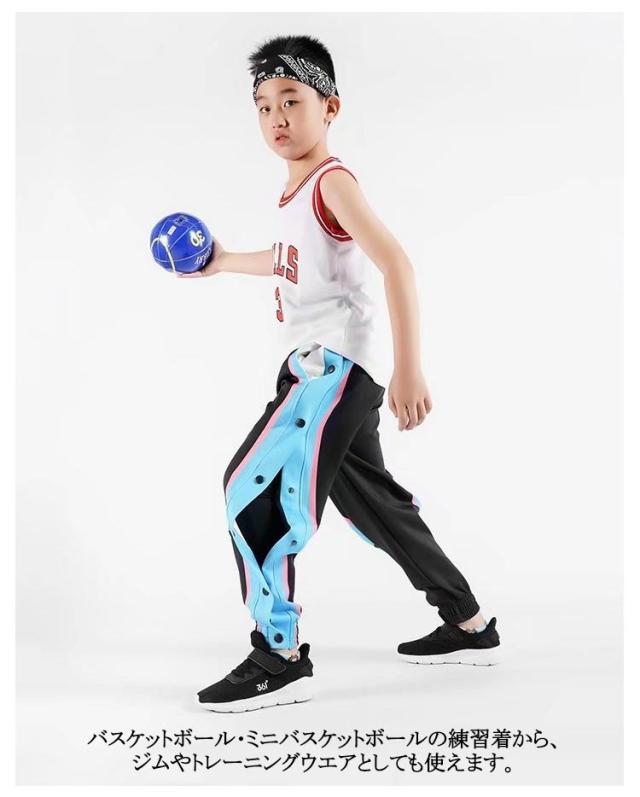 春 夏 ジュニア ジャージ 女の子 バスケットボールパンツ スナップボタン 裾ボタン キッズ サイドライン サイドボタン バスケットパンツ 男の子 冬 長ズボン ロングパンツ 秋 下 バスパン バスケパンツ スポーツウェア トレーニングウエア