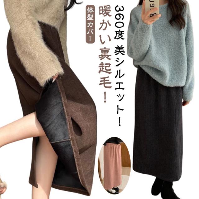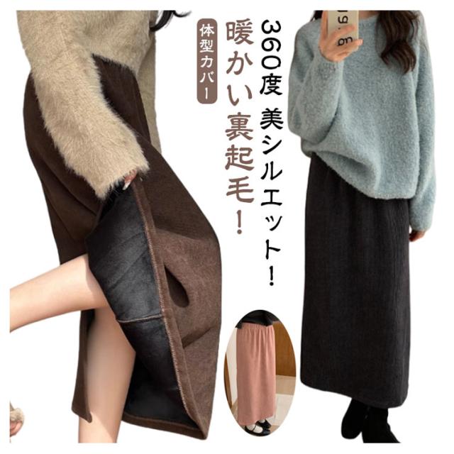 裏起毛 スカート ボアスカート レディース 裏起毛スカート 冬 ボア ロングスカート 防寒 ミモレ丈 ボトムス 無地 コーデュロイ タイトスカート スカート 体型カバー バックスリット マキシスカート マキシスカート 裏ボア 暖かい ハイウエスト 暖か 秋冬