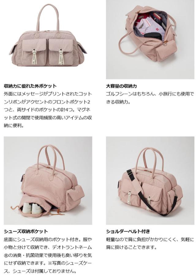 シューズ用ポケットや小物を入れられる外ポケットなど使い勝手のいいボストンバッグです。