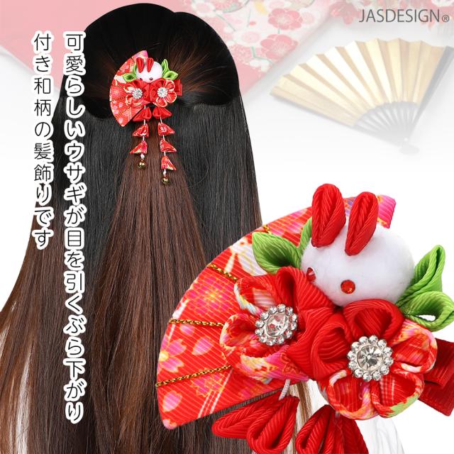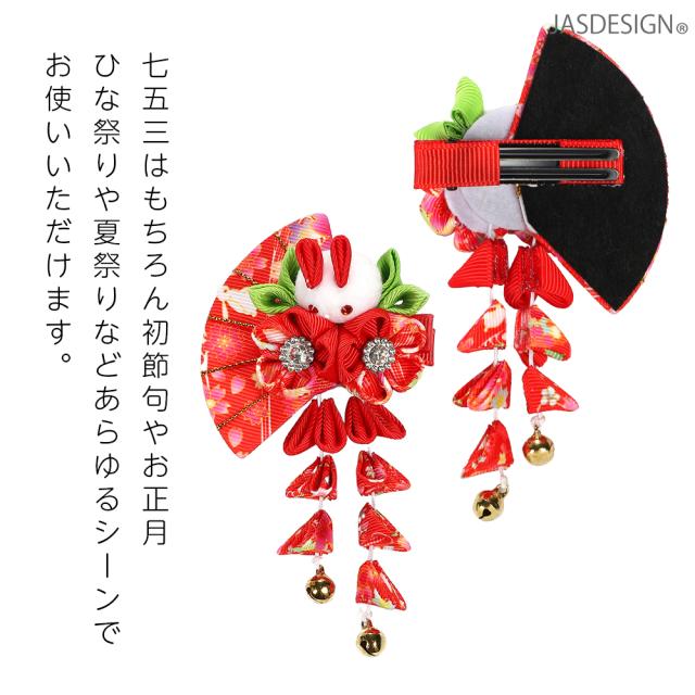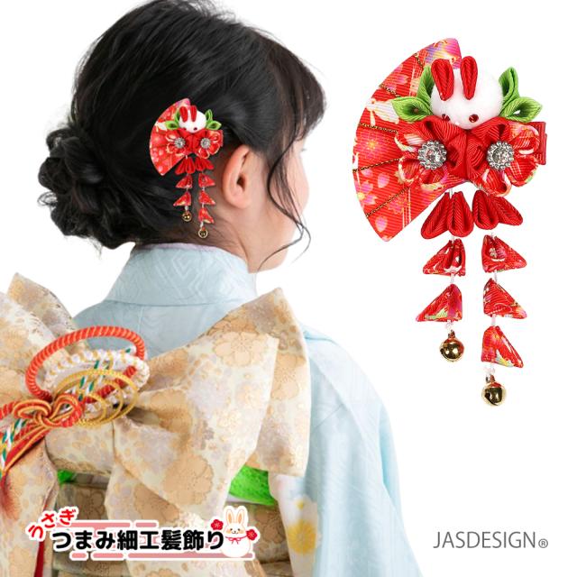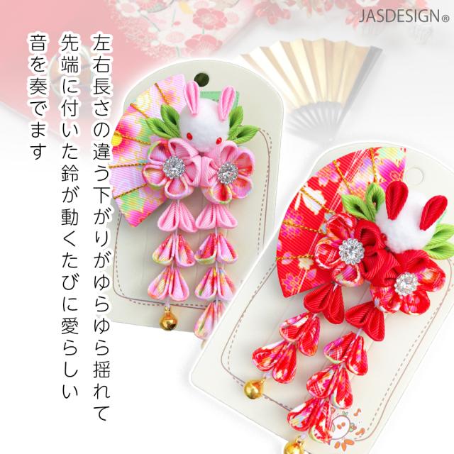 髪飾り 子ども 七五三 ヘアアクセサリー 和装 ヘアクリップ つまみ細工 下がり付 うさぎ 着物 振袖 結婚式 成人式 ちりめん 赤 ピンク 浴衣 キッズ 初節句 雛祭り 袴 卒業式 女の子 JM-364