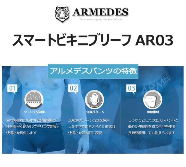 ARMEDES アルメデス アンダーウェア ビキニブリーフ カール防止 吸汗速乾 速乾性抜群 ドライ素材 メンズ 全8色 S-3XL AR03