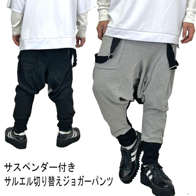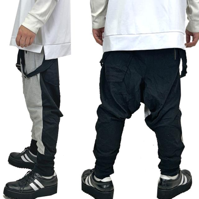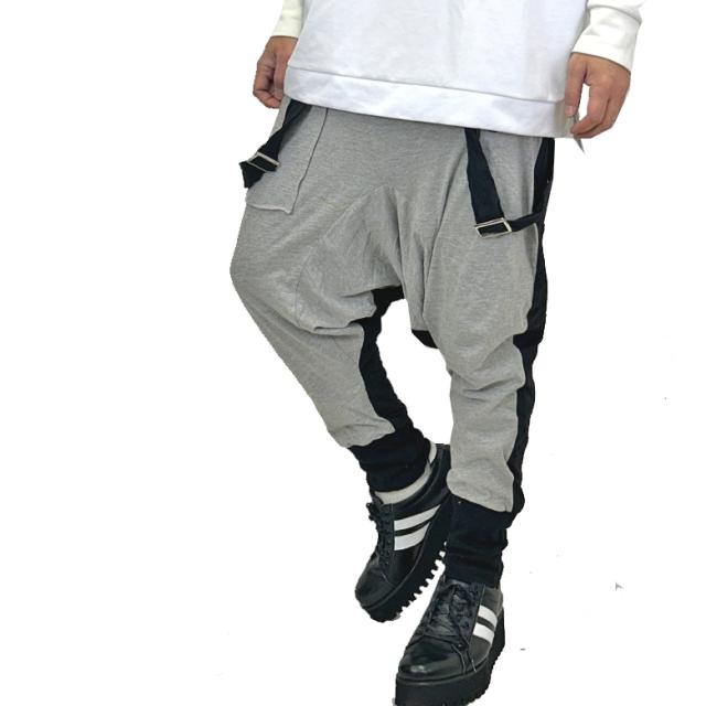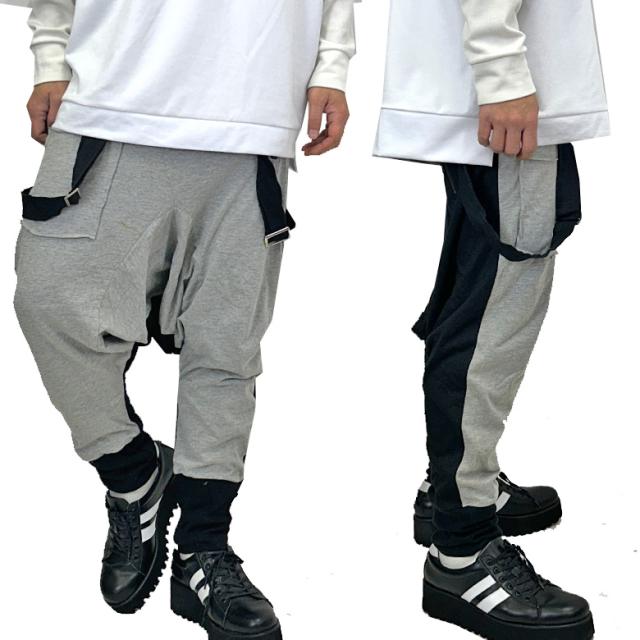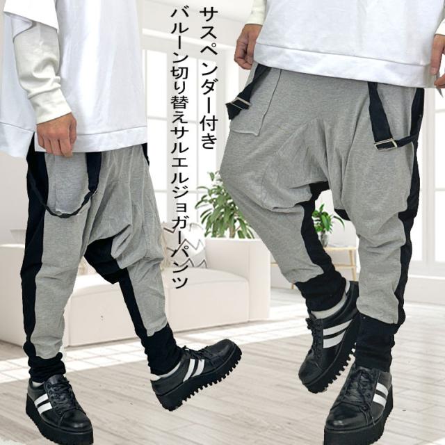 【閉店セール】サスペンダー付き バルーン切替 サルエル ジョガーパンツ スウェットパンツ メンズ バルーンパンツ 9191 スウェット パンツ サルエルパンツ ダンス アシンメントリー グレー ブラック フリーサイズ ジョグパンツ 部屋着 お洒落着 超サルエルパンツ