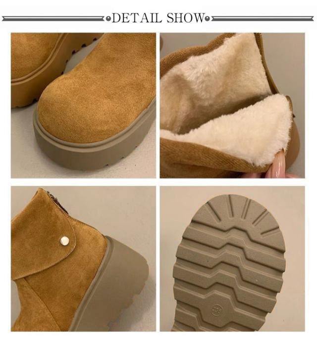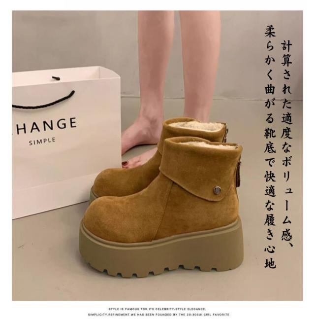 裏起毛 ムートンブーツ レディース ムートンブーツ ムートンブーツ ショートブーツ もこもこ スノーブーツ 防寒 ショートブーツ 裏ボア 防寒 厚底 もふもふ 裏起毛 靴 痛くない 合成スエード 履きやすい 歩きやすい スリッポン 疲れない 可愛い 冬 秋 靴