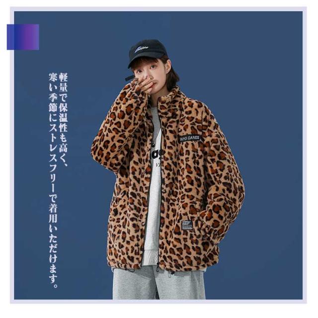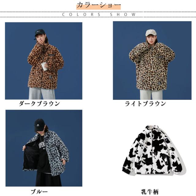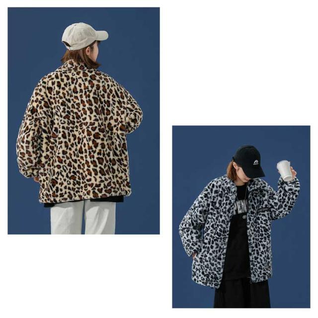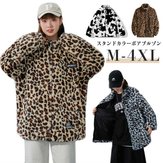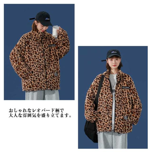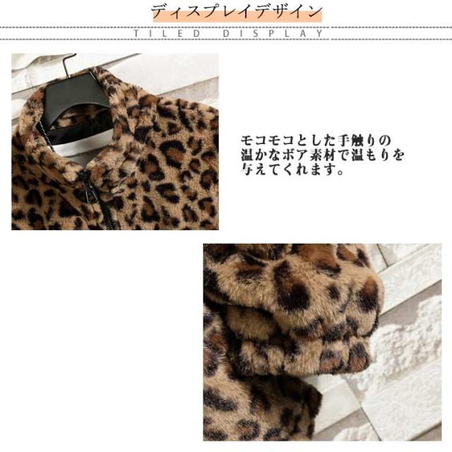 大きいサイズ スタンドカラー ボア レオパードジャケット スタンドカラー ブルゾン ブルゾン 韓国 ヒョウ柄 ボア ジップアップブルゾン ボアジャケット ブルゾン ジップアップ ジャケット レディース ゆったり 体型カバー 羽織