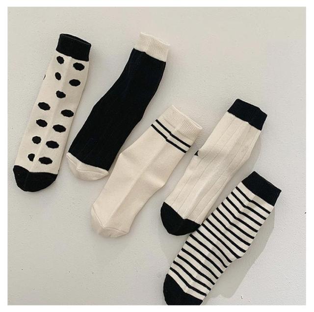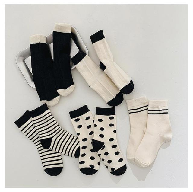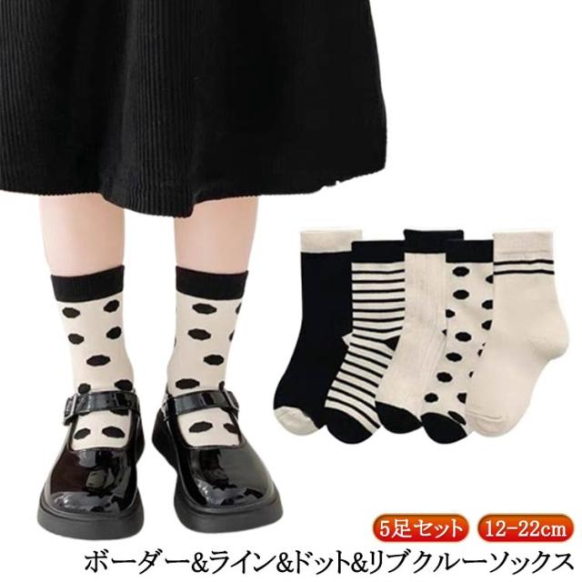 靴下 ボーダー 韓国 韓国 ドットクルーソックス5足セット ライン 韓国 キッズ ベビー服 通園 ナチュラル ファッション 子供服 ベビー 通学 韓国子供服 ベビーファッション 黒 白 春 秋 冬 靴下 靴下 送料無料 12cm 14cm 16cm 18cm 20cm