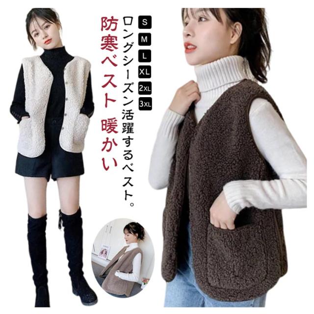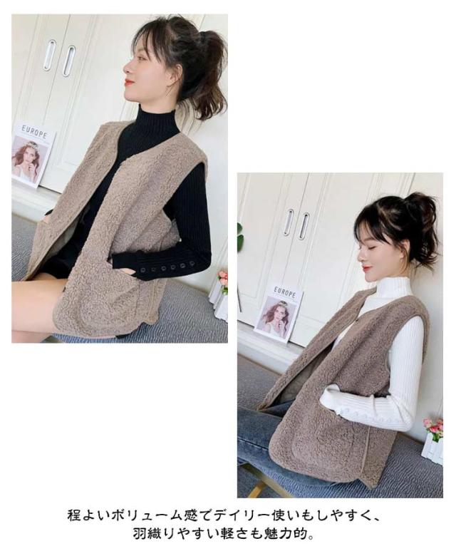 ボア 前開き 袖なし ボアアウター 暖かい ノースリーブ ショート丈 羽織り ボアベスト もこもこ ベスト アウター 着回し 秋冬コーデ 防寒ベスト レディース ベスト トップス ポケット付き お出かけ 通学 カジュアル 普段着 ベスト 無地 春 秋 冬 コーヒー ベージュ