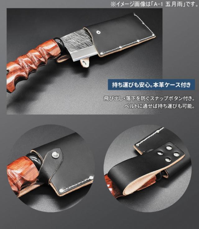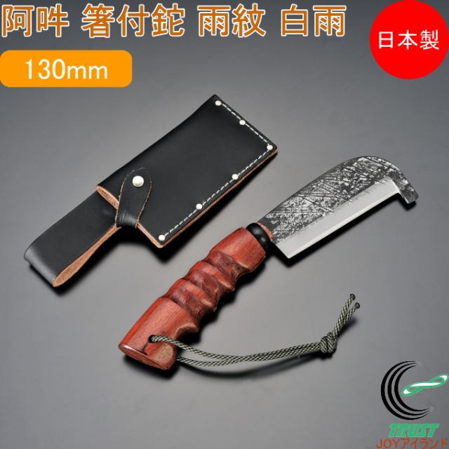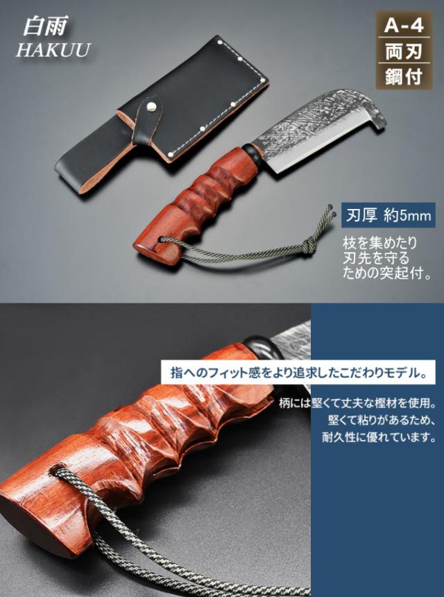 A・UN 箸付鉈 雨紋 白雨 A-4 日本製 燕三条産 ナタ なた 鉈 両刃 牛革ケース付き 園芸 ガーデニング アウトドア レジャー キャンプ 切る 削る 突起付き ハインズワーク HYNZEWORK
