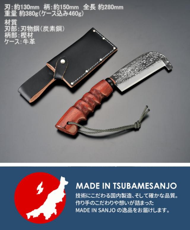 刃部:刃物鋼(炭素鋼) 柄部:樫材 ケース:牛革 |