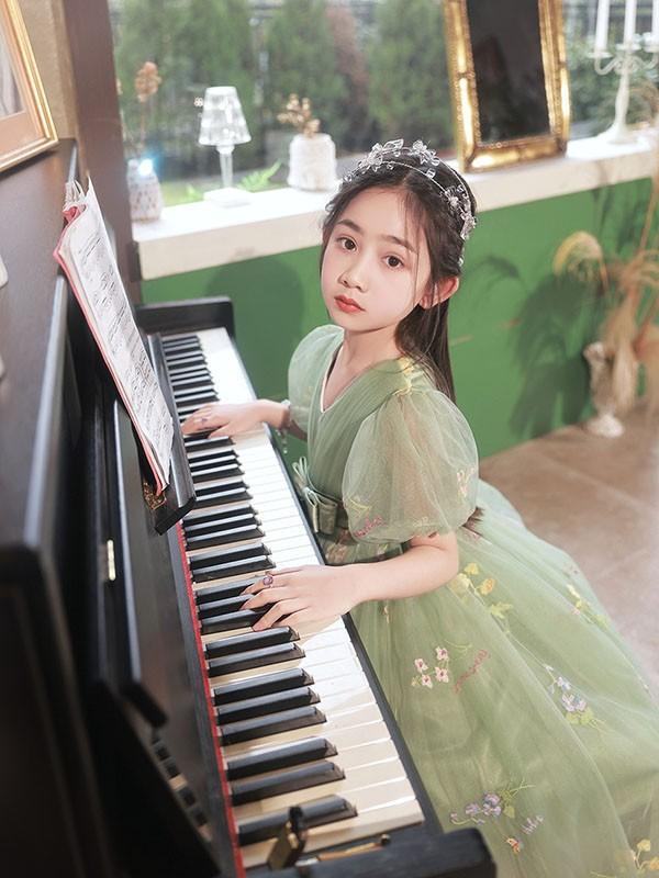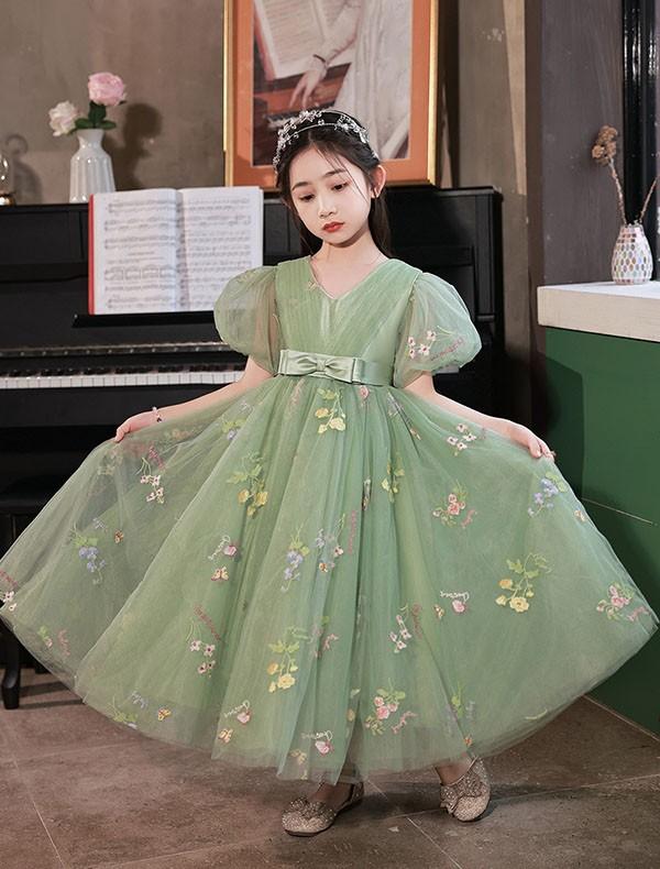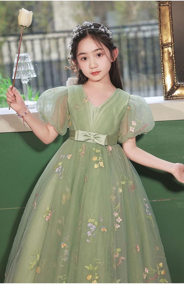 ピアノ発表会 ドレス 中学生 160 ワンピース パフスリーブ キッズ 女の子 キッズドレス 100 ロングドレス 袖あり 半袖 子供服 パーティー ロング丈 子供ドレス 演奏会 フラワーガール プリンセスドレス ブライダル フォーマル 七五三 可愛い お姫様