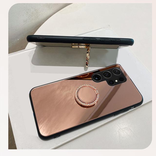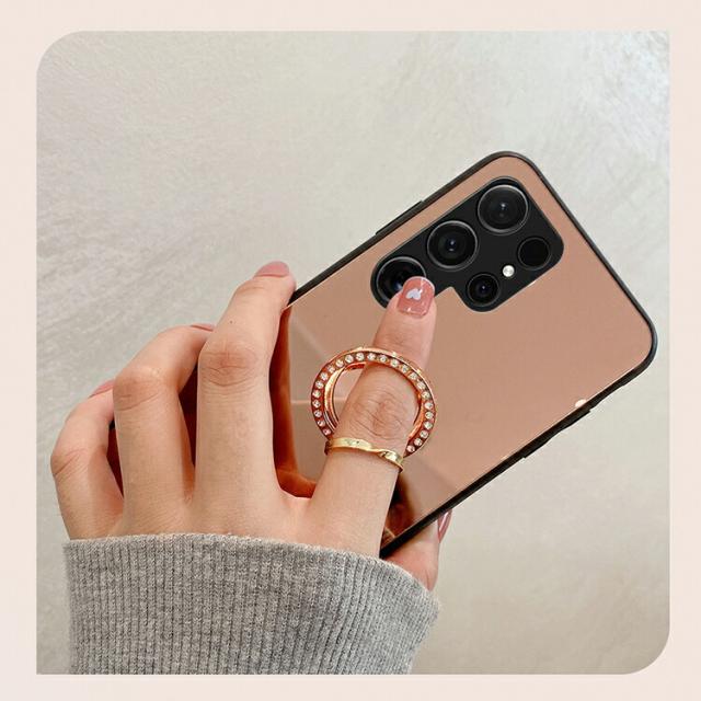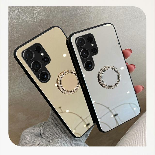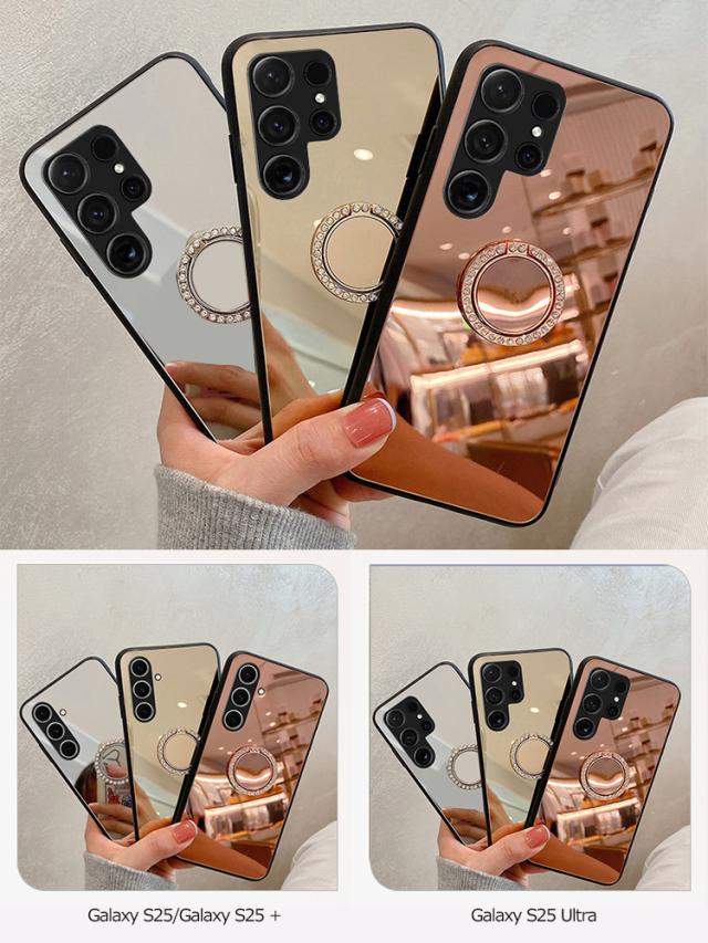 Galaxy S25 ケース クリア S25+/S25 Ultra カバー背面ミラー 鏡面 ケース/カバー ストラップ穴 スタンド機能 後付け リング付き かわいい ラインストーン キラキラ 可愛い お洒落 Samsung サムスン ギャラクシー S25/S25 プラス/S25 ウルトラ おすすめ