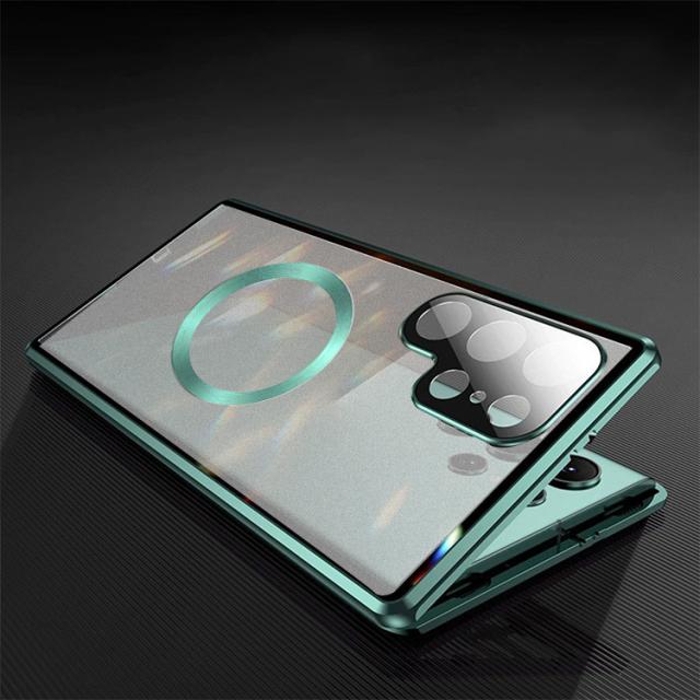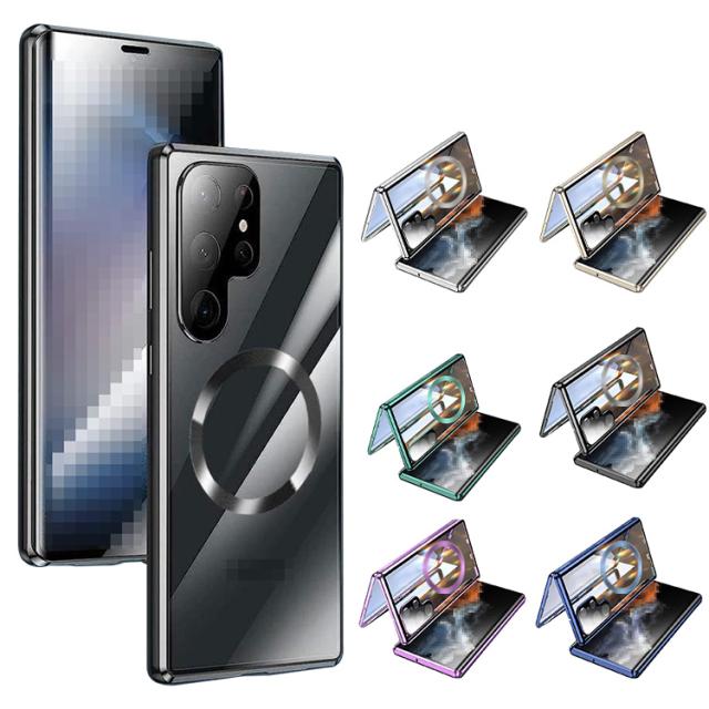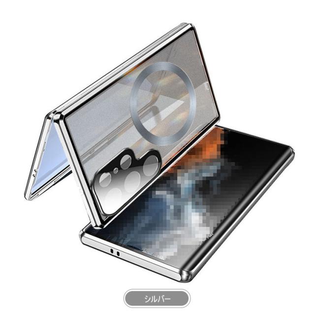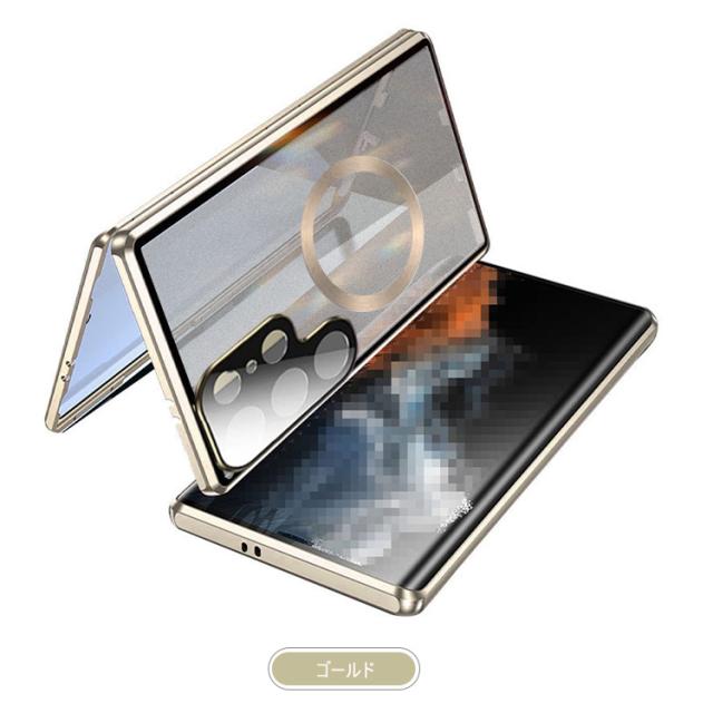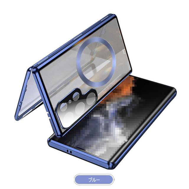 Galaxy S25 ケース アルミ バンパー S25+ S25 Ultra カバー 前後強化ガラス かっこいい アルミバンパー ロック付き カメラ保護 Qi充電 ワイヤレス充電 対応 クリア 透明 両面 マグネット固定 全面保護 Samsung サムスン ギャラクシー S25/S25 プラス/S25 ウルトラ おすすめ