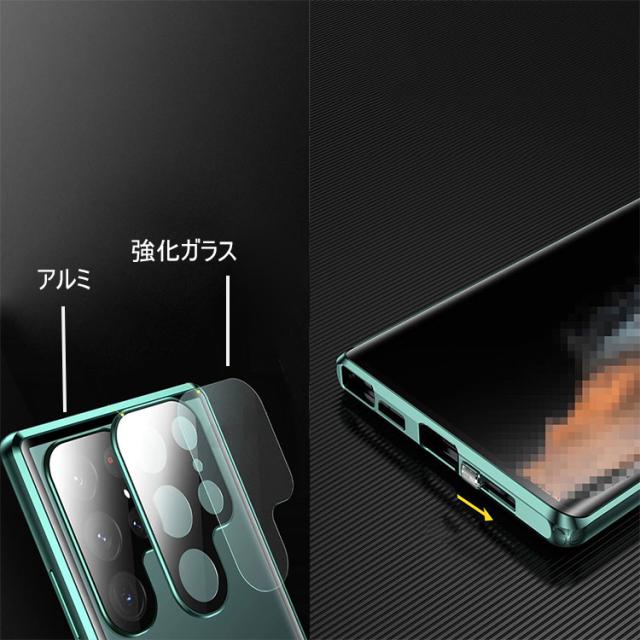 液晶 + カメラも全面保護 アルミバンパー 強化ガラス バックパネル付き マグネット式 簡単装着 サムスン ギャラクシー S25/S25 プラス/S25 ウルトラ おすすめ