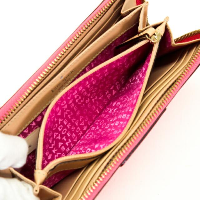 ケイトスペード Kate Spade ウェルズリー レザー PVC WLRU1153 長財布 ラウンドファスナー ロングウォレット レディース ピンク 中古 maq12005
