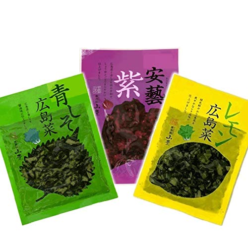 広島菜 刻み漬物3種セット (安芸紫・青しそ・レモン)