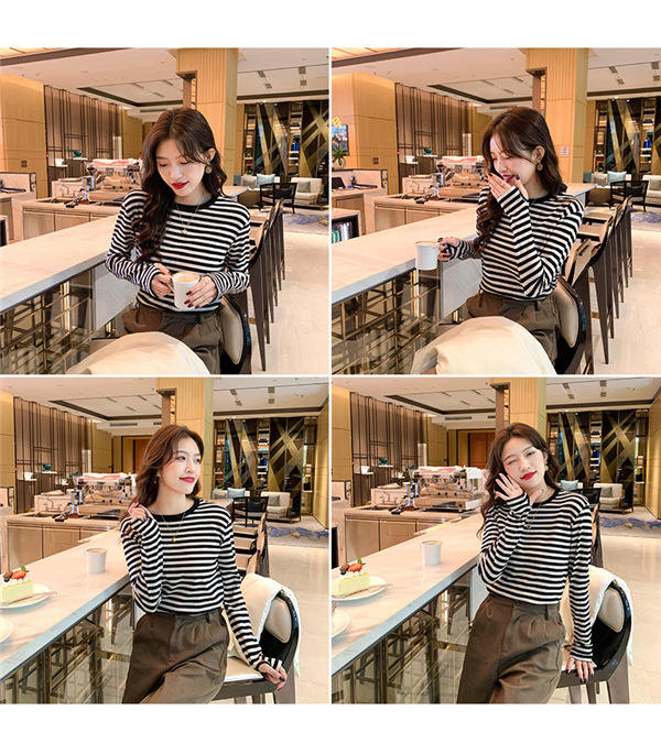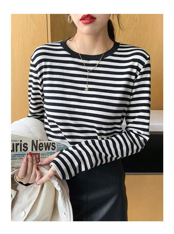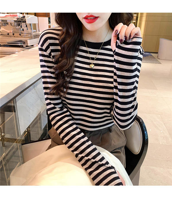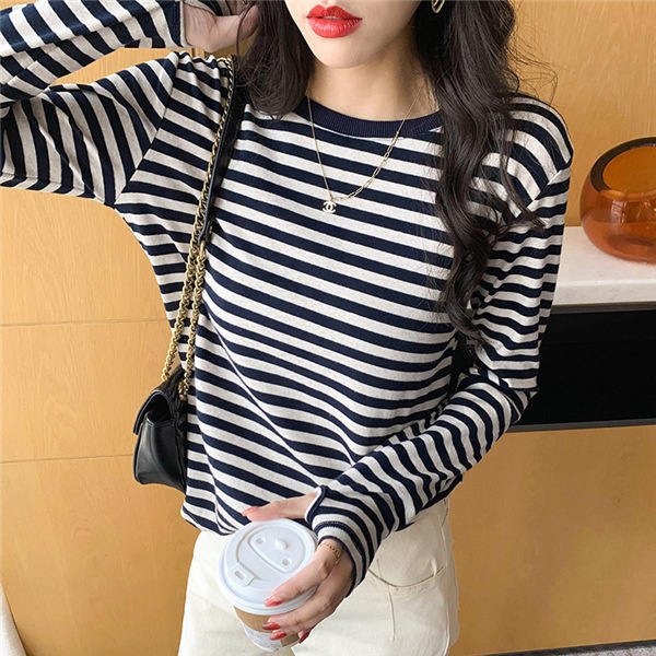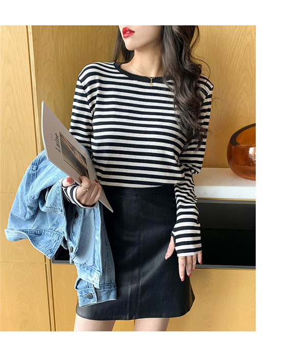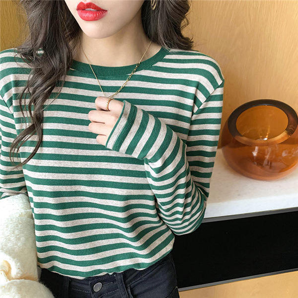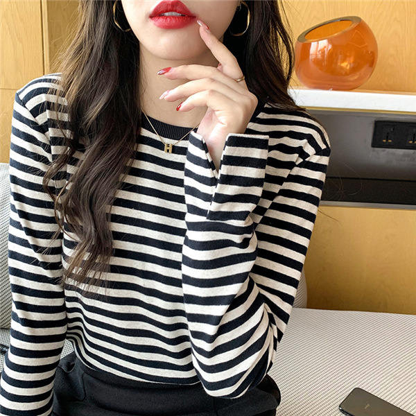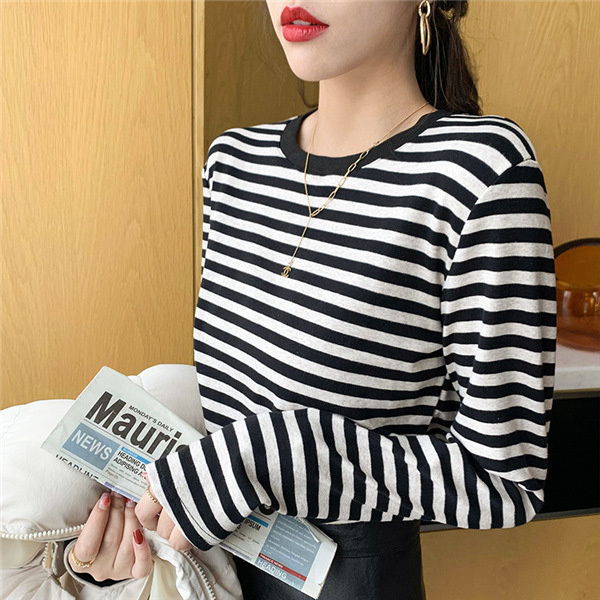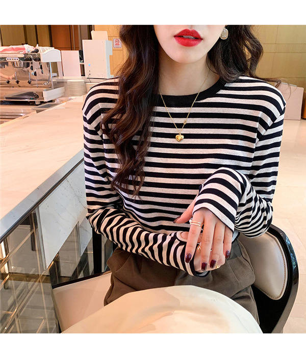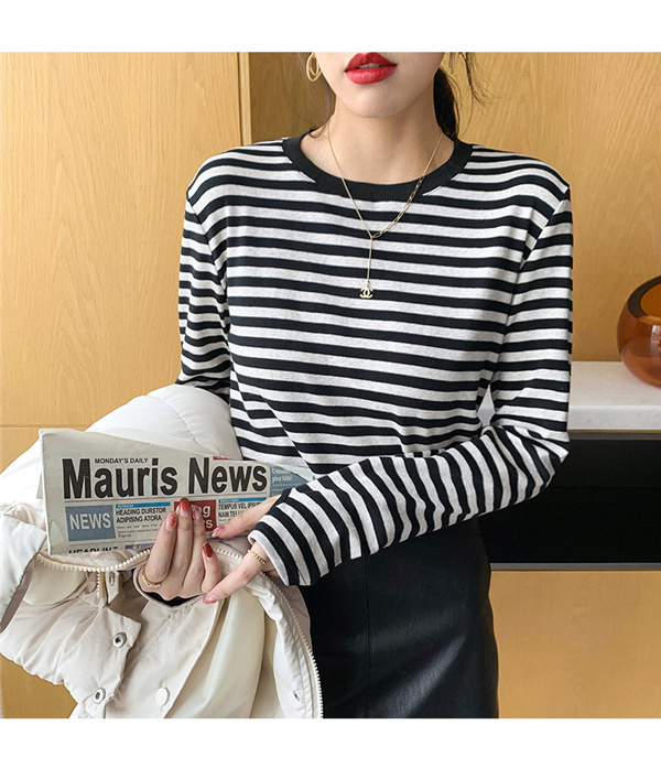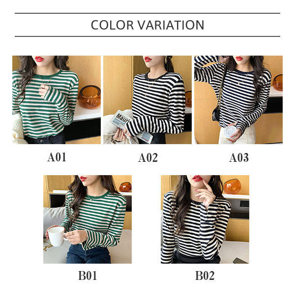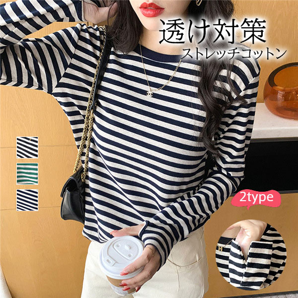 Tシャツ カットソー 長袖 レディース ボーダー柄 ラウンドネック インナー トップス 暖かい シンプル 無地 ストレッチ チュニック きれいめ 女性
