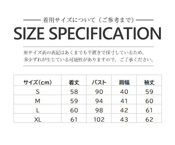 ※基本的に、XL・LL・2Lのサイズはすべて同じサイズです。