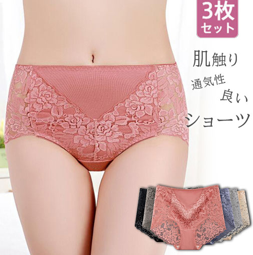 ショーツ 3枚セット 下着 レディース レース 通気性良い 絹糸パンツ インナー しっかり包み 履きやすい 20代 30代 40代 50代