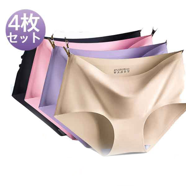 4枚セット ショーツ レディース シームレス 下着 プレーンショーツ 超盛 通気性良い アイスシルク生地 涼しい パンツ 送料無料