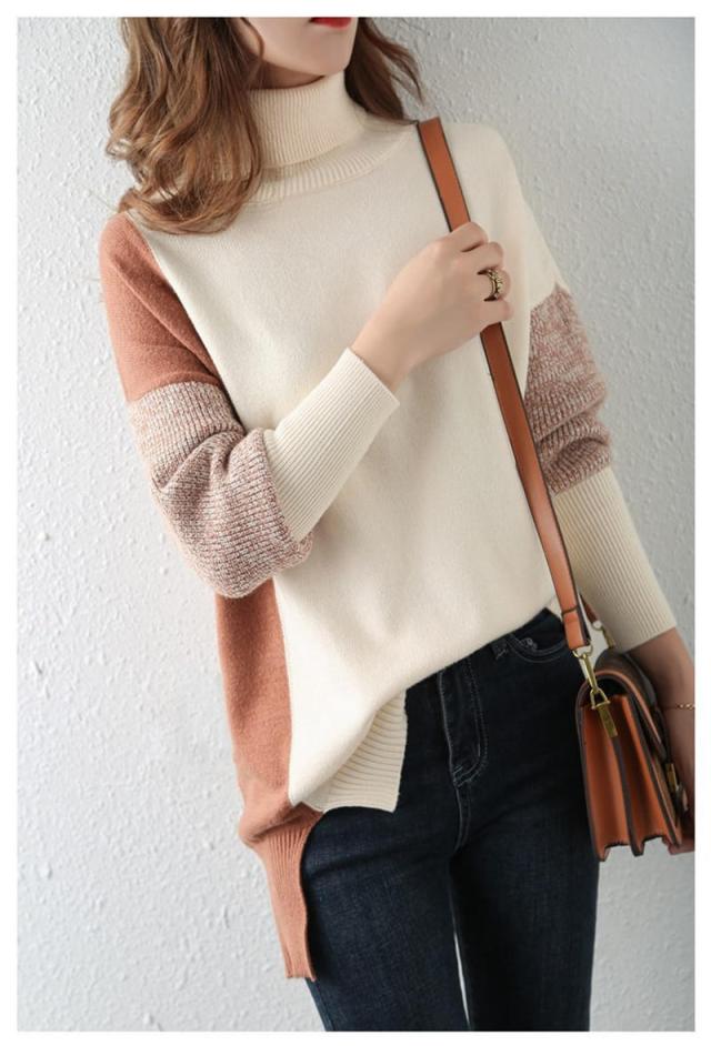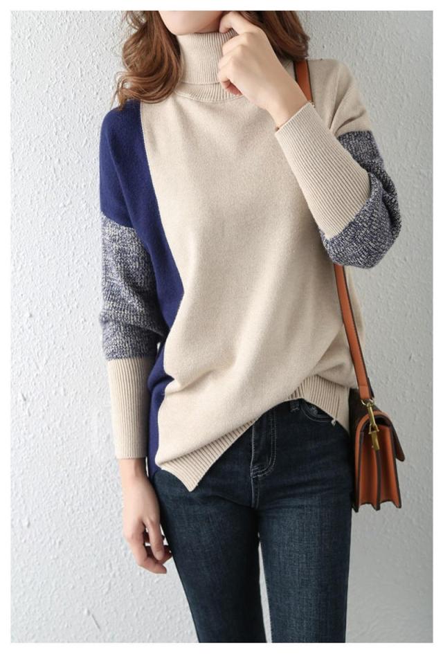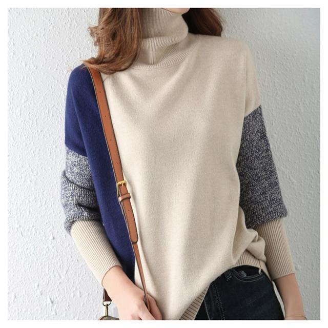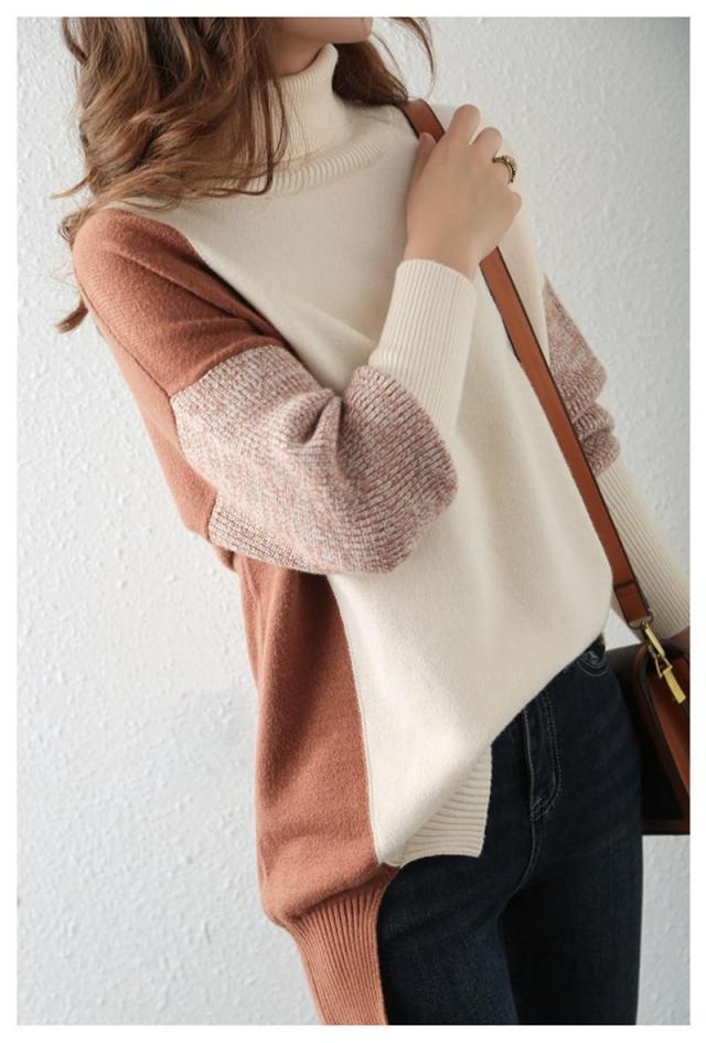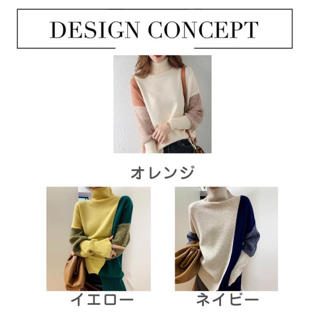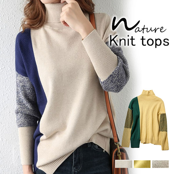 ニット トップス レディース 40代 切り替え オフタートル カットソー 長袖 シンプル セーター 秋新作 インナー ゆったり 大人 カジュアル