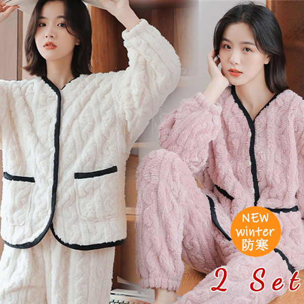 パジャマ レディース ルームウェア 毛布 モコモコ 秋冬 長袖 厚手 暖かい 上下セット ふわふわ 可愛い 部屋着 ナイトウェア 柔らかく オシャレ