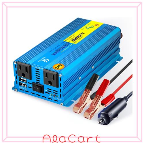 LVYUAN(リョクエン)インバーター 正弦波 24V 1000W 最大 2000W DC 24V(直流) AC100V(交流) 変換 AC コンセント×2、USBソケット×2
