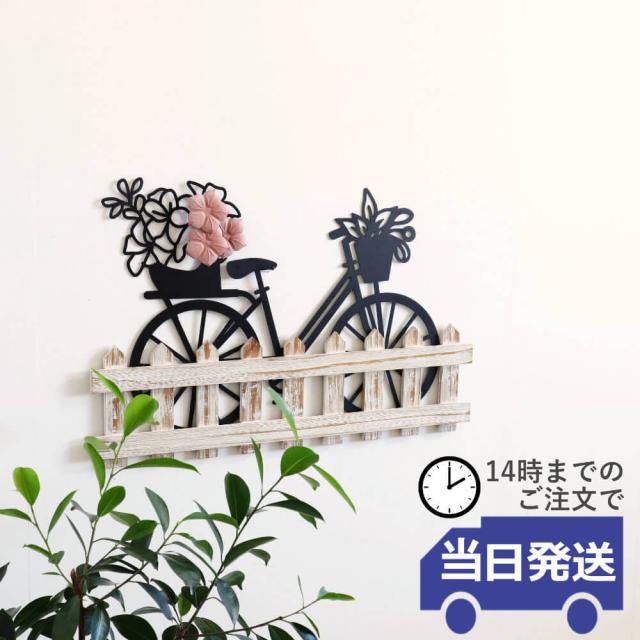 【当日発送 動画あり】ウォールデコレーション インテリア 壁飾り 木製 アイアン 北欧 壁掛け アートボード シャビーシック アンティーク調 自転車 フェンス