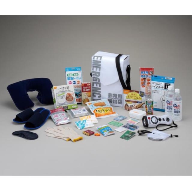 付属品:防災ショルダーバッグ(ベトナム)・防災セットに入れておくと便利な「明るいラジオライト」・長期保存アルカリ単3×4(日本)・あんしん保存水500ml×2(日本)・ひだまりパンプレーン(日本)・野菜一日これ一本(日本)・きのこご飯(日本)・ライスクッキーココナッツ(
