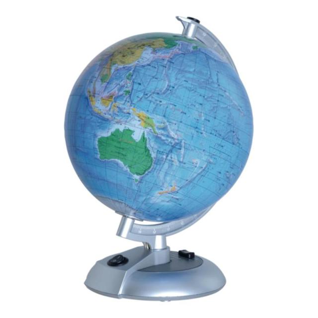 現品サイズ:明るい時は地球儀、暗くなるとセンサーで光る天球儀の1台2役。行政地図を採用し、レリーフ併用により地形の様子もわかる本格派です。