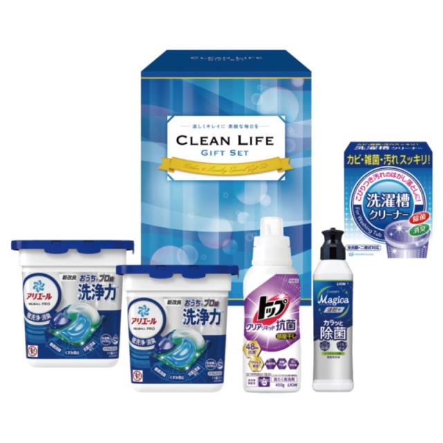 付属品:P&Gアリエールジェルボール(11個)×2・ライオントップクリアリキッド抗菌450g・ライオンチャーミーマジカ速乾+(プラス)カラッと除菌 シトラスミントの香り220mL・洗濯槽クリーナー(50g×2包)