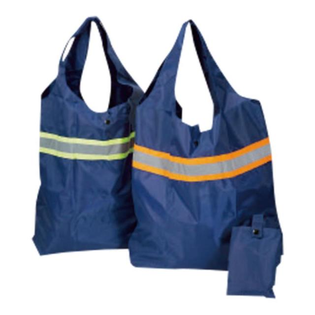 現品サイズ:反射テープ付きで、会社帰りの買い物や、シルバーの方の買い物にも安心感が増します。内容量の割に小さく折りたためるのは嬉しい配慮です。