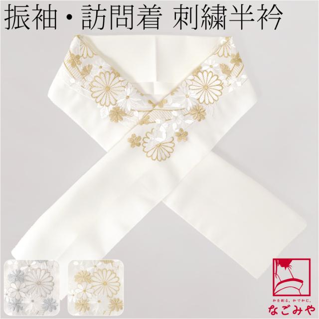 半衿 刺繍 半襟 袷用 日本製 シルエリー 刺繍半衿 白 Bのしめに菊 訪問着 成人式 振袖用 ポリエステル 礼装 大人 レディース 女性10024428