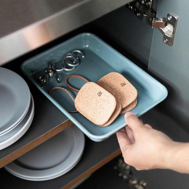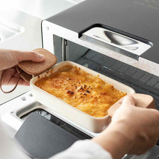 コンパクトで軽量なコルク製ミトンです。コルクは燃えにくく熱を伝えにくい特徴があり、ミトンに適した素材です。スチームクッカーなどハンドルが熱くなる鍋や、電子レンジやオーブンから熱い皿を取り出す際に活躍します。